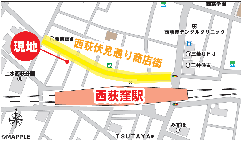 人通りの多い『西荻伏見通り商店街』に立地している為、集客が期待できます。